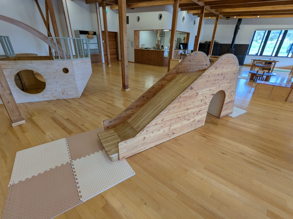 体を動かせる大型遊具はないですが、とてもきれいで木のぬくもりを感じられる素敵な場所です
