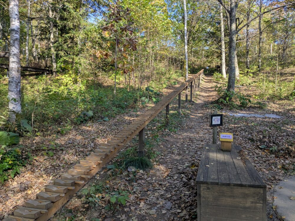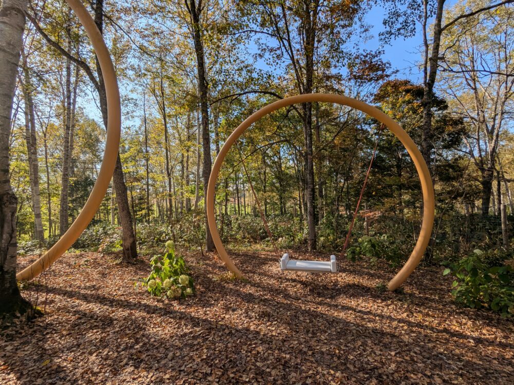 - 遊びの森:3つのエリアのうちの一つです。自然の中で楽しめる遊具があり、子どもから大人までアクティブに楽しめます。「リング型揺れるベンチ」など、ユニークな遊具があります。